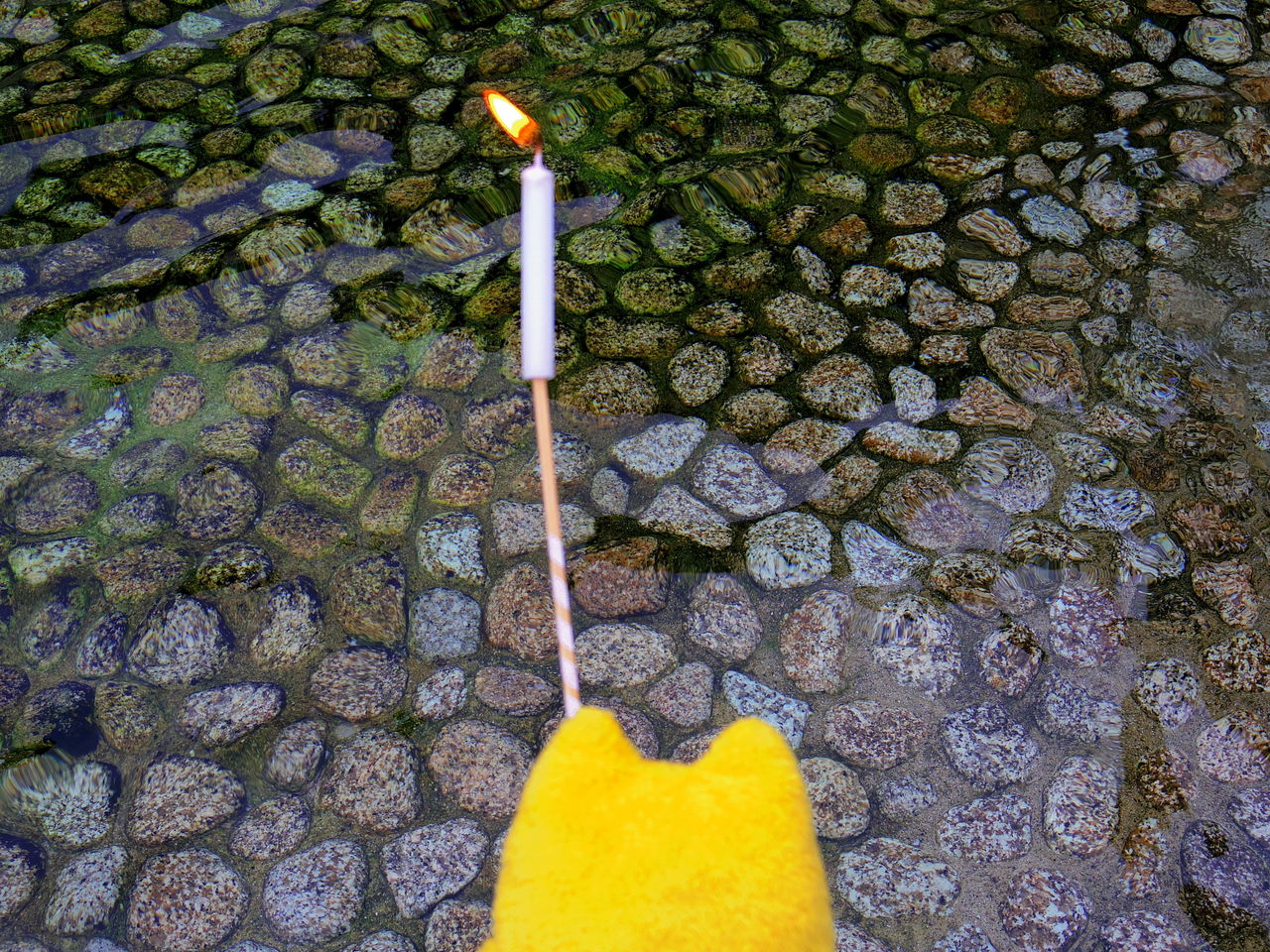 受付でお供え料¥300をおさめてロウソクを受け取り、水の中へ![]()